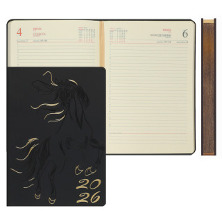 - → Ежедневник 2026, А5, 176л., кож.зам., Horse FIORENZO, черный