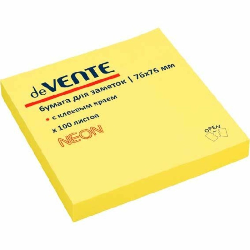 - → Клейкая бумага для заметок deVENTE 76х76мм неоновая желтая 100л